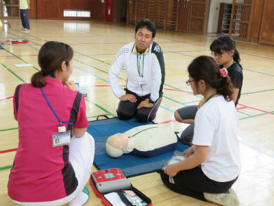 5月25日(木)15:10より体育館において「心肺蘇生法研修」が行われました。羽生総合病院のみなさまにご指導いただきました。また、練習機材を春日部消防所様よりお貸し頂きました。おかげさまで4~5人のグループに分かれ、有意義な研修をすることができました。教員の質問に大変丁寧に答えていただきました。有事に備えるとは、児童の命を守るための心の準備、覚悟、行動」だと思います。私たち教員は、東日本大震災や熊本地震についての報道映像を見るたび、「有事に備える」思いを強くしています。