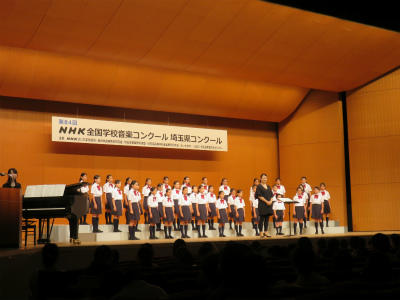 8月1日(火)さいたま市民会館おおみやに於いて「第84回MHK全国学校音楽コンクール埼玉県コンクール」が開催されました。本校からは合唱部が出場し、見事入選しました。11番目の演奏、課題曲「いまだよ」に引き続き自由曲「まいごのひかり」、伸びやかな美しい歌声で会場を魅了しました。練習の成果を十分に発揮することができました。入賞校は8月10日(木)大宮ソニックに於いての本選に出場します。おめでとうございます。ますますの活躍を期待します。