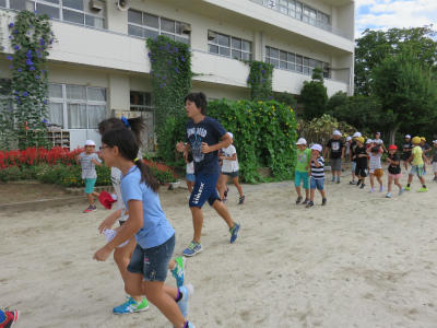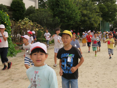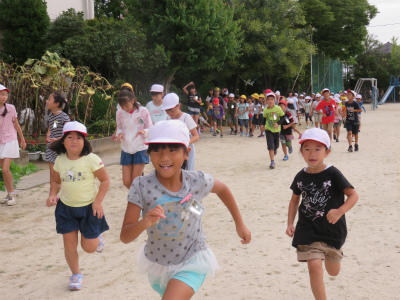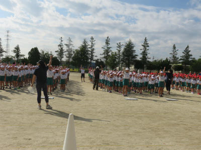 9月13日(水)朝、校庭において「運動会の歌」「校歌」の練習をしました。室内と異なり、音が響かない環境での歌練習です。大きな声で元気よく歌うことを約束しました。1年生も元気いっぱいがんばっています。