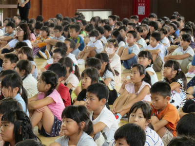 9月11日(月)紅白応援団のみなさんが、低学年の教室に出前練習に出向いてくれました。元気いっぱいの声が、廊下に響きました。本番の応援合戦が楽しみです。!!応援団のみなさん、よろしくお願いします。