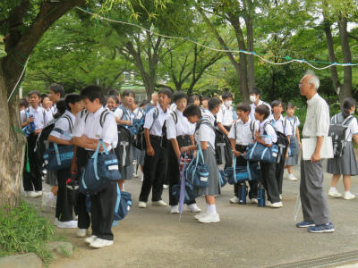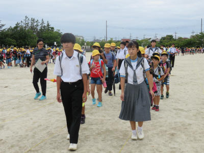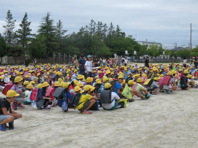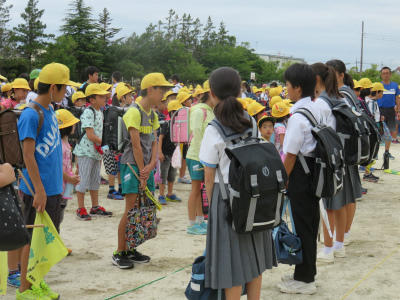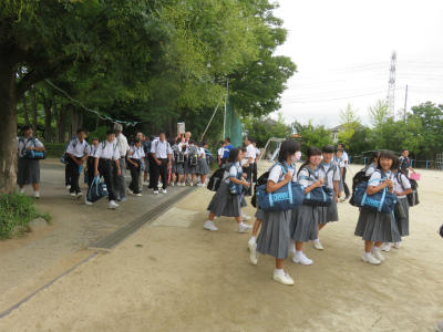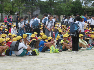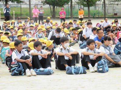 9月4日(月)5校時、小中学校において「避難訓練」が行われました。その後、大増中学校の生徒さん80名が来校し、合同で一斉下校しました。