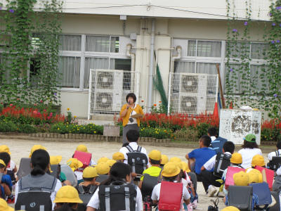 小学校の避難訓練では「校舎の中では、お(押さない)・は(走らない)・し(しゃべらない)・も(戻らない)・ち(近づかない)」「校舎の外に出たら、さ(さわがない)・か(かけない)・な(並ぶ)」という話をしました。