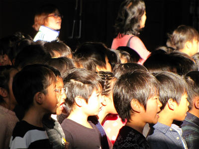 12月13日(水)朝、体育館において「12月の音楽朝会」がありました。このところ朝の寒さも厳しくなってきています。歌声と共に息も白く輝いています。今月の歌は「世界が一つになるまで」です。~つらいとき ひとりきりで 涙をこらえないで 世界がひとつになるまで ずっと手をつないでいよう~・・・子どもたちの心に、この歌詞がどう響くのか・・・そんなことを考えながら聞いていました。