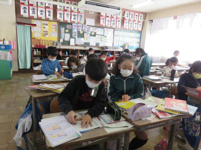 4年生は、欠席が目立っています。マスクをして感染を予防しています。