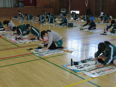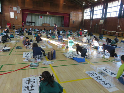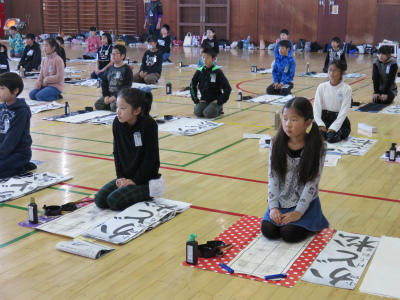 12月5日(火)体育館において「校内競書会」が行われました。1・2校時は3年生、3・4校時は6年生が参加しました。体育館の程よい冷え込みに心が引き締まるようです。今まで練習してきた成果を存分に発揮することができました。今年は、先生方も練習会を開き、指導に備えました。明日は、4・5年生の実施日となります。