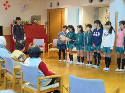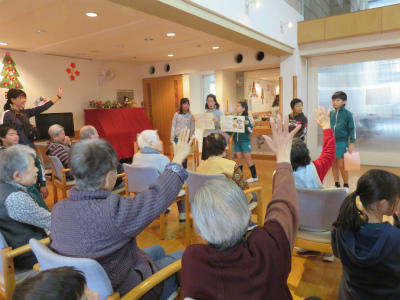 福祉委員会の子ども達が考えたゲーム(立野小クイズ、爆弾ゲーム)を一緒に楽しみました。また、最後は「赤鼻のトナカイ」をみんなで歌って終わりました。子ども達もほのぼのとした気持ちになりました。3月には、また訪問させていただくことをお約束しました。