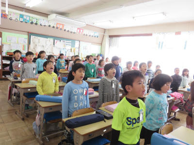 2年生、元気いっぱいです。今月の歌「世界が一つになるまで」を歌っていたのは3組です。廊下にも元気ないい歌声が響きました。いつも通り、うがい、手洗い、しっかししましょうね。
