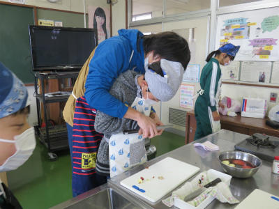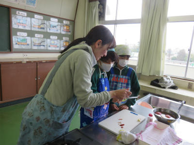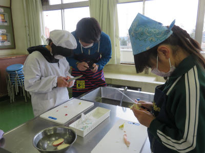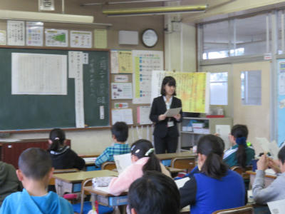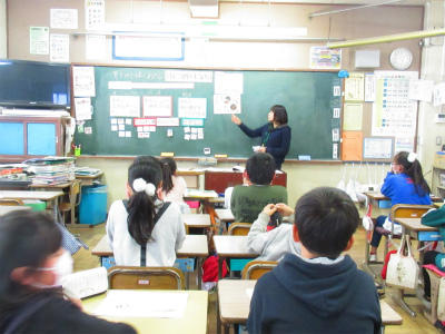 2月9日(金)、3年次教員訪問指導があり、布目栄養教諭が2校時1年2組「学級活動」、3校時4年2組「保健」を担任とのTTにより行いました。