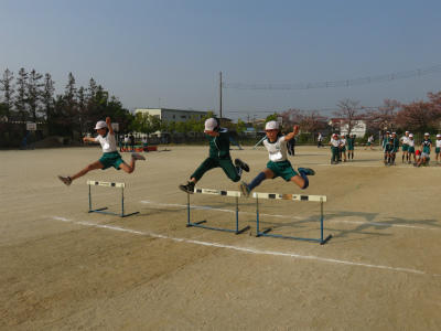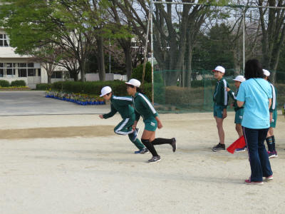 4月25日(水)校庭では、子どもたちが陸上練習に励んでいます。5月の中旬までは、種目別練習に取り組みます。朝の雨がうそのように晴れあがりました。立野小学校の校庭の水はけはぴか一ですね。