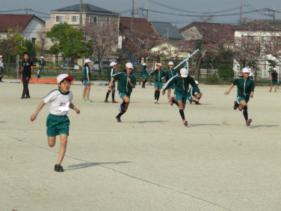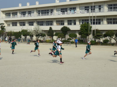 4月3日(水)今朝も校庭に子ども達の元気な声が響きます。スプリングカーニバルには、多くの子ども達がやってきます。暖かくなり、体を動かすにはよい季節となりました。さわやかな汗をかき、先生たちと一緒に体力づくりに励んでいます。