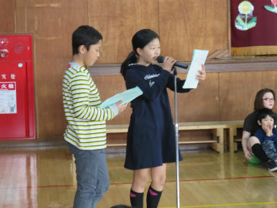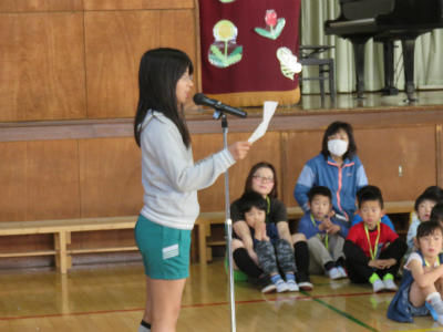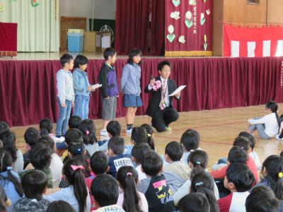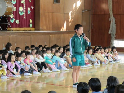 各学年からは歓迎の言葉が述べられ、1年生からも立派なお礼の言葉がありました。