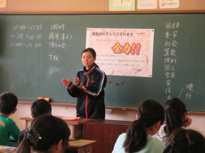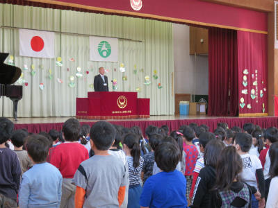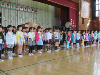 校長からは「恩送り」の話をしました。下の学年の子にかけた心を、下の学年の子がさらに下の学年に送っていく。そんな学校がすばらしいよ、という内容です。1年生はいよいよ明日から「おは走」も始まるようですよ。頑張ってね!!