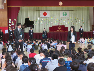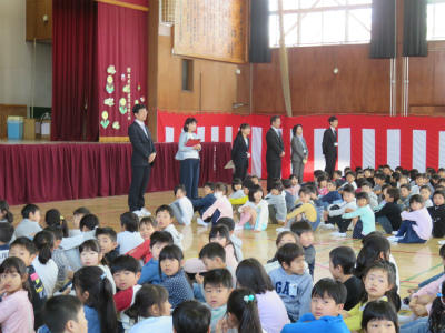 3月30日(金)今年度末で転退職される先生方に、みなさんを代表して校長よりお礼を申し上げました。みなさんに、日々丁寧な御指導をいただき、心温まるお言葉をたくさんかけていただきました。「いつまでも立野小を応援しています」というお言葉をいただきました。お世話になりました。ありがとうございました。・・・さびしくなります。