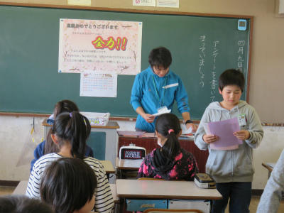 安全教育主任の佐藤先生からは「真剣に訓練を行うことが大事」「命を守るための訓練」というお話がありました。校長からは「自分の命、家族の命、友達の命を守る大切な訓練。100点満点をとれないとダメ」という話をしました。しっかりと話を聞くことができました。