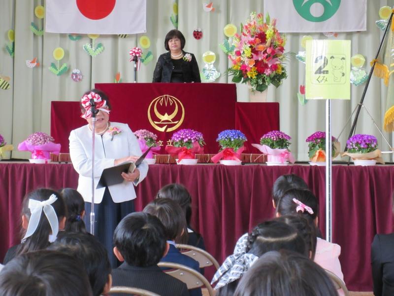 4月10日(火)13:30~体育館に於いて、平成30年度第42回入学式を挙行しました。ご来賓の皆様、保護者の皆様に見守られながら107名の児童が本校に入学しました。