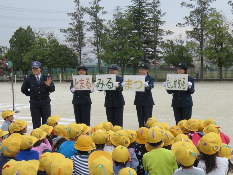 4月11日(水)校庭において、2校時(1年生)、3校時(3年生)、「交通安全教室」が開催されました。お忙しい中、春日部警察署の皆様、くらしの安全課のみなさま、交通指導員のみなさまに御来校いただきました。ありがとうございました。