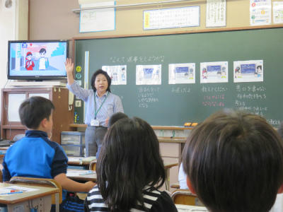 1年生は、正しい歩行の仕方を学びました。3年生は正しい自転車の乗り方について学びました。暖かくなると、子ども達の行動範囲も広がります。慣れた道だからといって、油断は禁物です。御家庭でも今日を機会とし、交通ルールについての確認をお願いします。