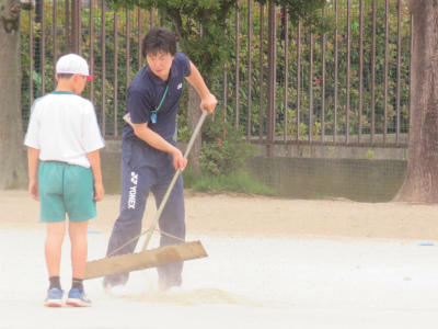 5月31日(木)今日は、待ちに待った市内陸上大会です。会場校として、丹念に準備を進めています。先生方も6時前には集合し、校庭にブラシをかけました。「チーム立野」を感じる場面です。そして、きっといい陸上大会になるという予感がします。