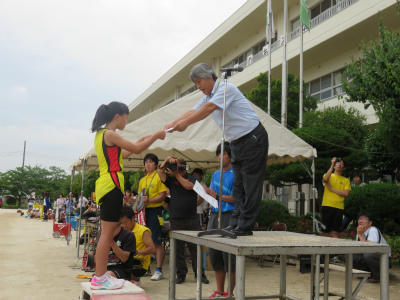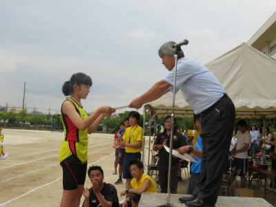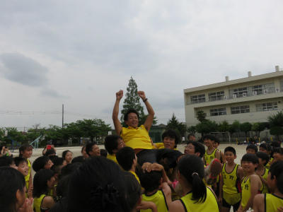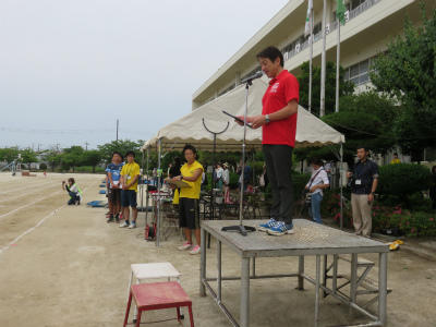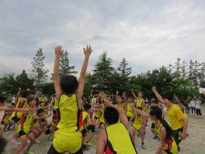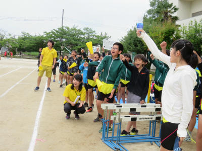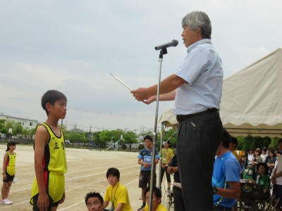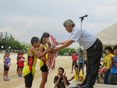 「勝つこと」だけにとらわれず、「自己の記録」を塗り替えること。「陸上を通して人間として成長すること」を先生方と子どもたちに語りかける毎日でした。辛い練習にもよく耐え、選手のみなさんは頑張りました。また、全校挙げての応援も見事でした。全員で勝ち取った勝利です。