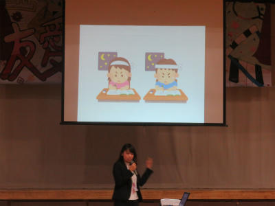 6月22日(金)10:30~大増中学校体育館において、「食育交流会」が開かれました。今日は、株式会社明治 コミュニケ―ション本部専任課長 森様に御講演をいただきました。大増中2年生、立野小5年生の異年齢交流でもあります。今年度は、2校が「つながる食育推進事業」によるモデル校となっています。摂取しなければならないカルシウムの量、食事量、食事内容など、たくさんのことを考えるいい機会となりました。