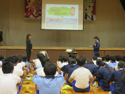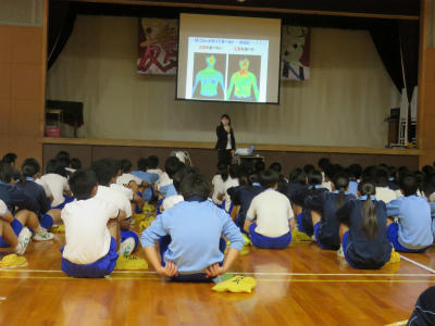 「立野っ子は賢い。校長先生は、学校に来るとみんなのあいさつで元気になる。言葉の大切さがよくわかっている。」と話しました。今以上に、相手を思いやる気持ちを育てたいと思います。お話もしっかり聞くことのできる立野っ子です。