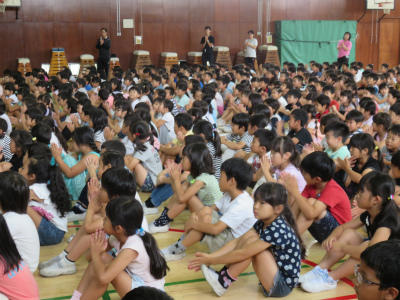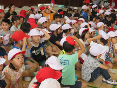6月27日(水)朝、体育館において「7月のお話朝会」が開かれました。今日の校長の話は、「言葉に宿る魂~言霊(ことだま)」をテーマにしました。入学、進級後早や3か月が過ぎました。学校生活も軌道に乗り、様々な行事も目白押しです。活気づくに従って、言葉に関する課題が見えてきました。お友達にかけている言葉は優しいものだろうか、相手の気持ちを思いやっているだろうか、みんなと一緒に考えました。日本には古来から「言霊信仰」が伝わっています。現代にも「忌み言葉」「祝詞」「あいさつ」に名残を残しています。おそらく先人たちは、言葉によって辛い気持ちが生まれることを経験し、言葉に命があると教え、不吉で嫌な言葉を遠ざけてきたように思います。