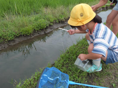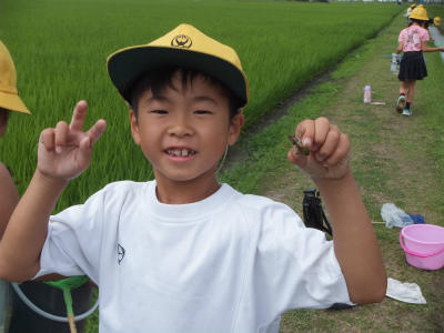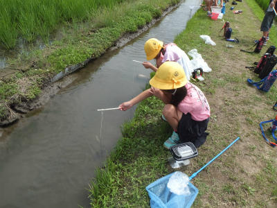 6月14日(木)1・2校時、2年生が生活科「生きものと友だち」の単元で校外学習に出かけました。学校の近くで生きもの探しをし、生きもののすみかや性質を知るための学習です。今日は大増新田にお住いの方の御協力を得て、ざりがにつりに挑戦しました。えさを工夫したり、釣り方を工夫したりしました。あちこちで歓声があがっていました。御協力をいただきまして、ありがとうございました。