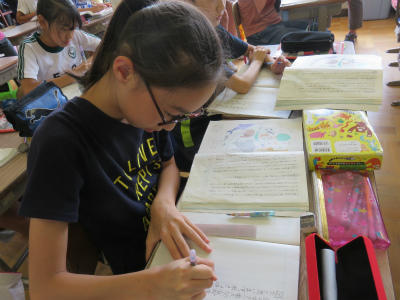 4年生「小石投げの名人タオ・カム」「ルンペルシュティルツヘン」「ぼくのいぬがまいごで す!!」「くさる」