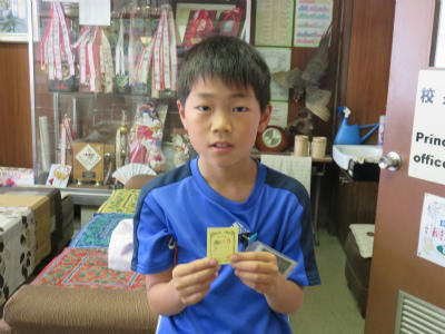 6月7日(木)、今日もたくさんの子どもたちが、「校長検定」に挑戦しました。2年生でも「平家物語」をすらすら暗唱します。黄色い紙はミニ賞状。20枚集めると金メダルがもらえます。1度にいくつもの暗唱にチャレンジし、合格する子どもも増えてきました。おうちでおじいちゃんやお母さんと暗唱している、と話してくれる子どももいます。