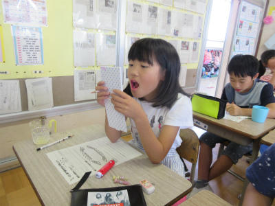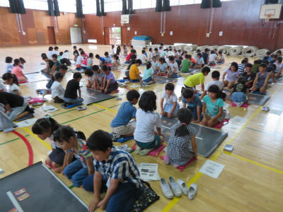 6月18日(月)15:00~「第1回立野っ子ひろば」が開催されました。今回は、4・5・6年生が対象となる講座です。料理教室、マジックスクリーン、パソコン教室、ドッジビー、の4講座が開かれました。「料理教室」では、たまねぎのコンソメスープ、じゃがもちチーズナゲットを作りました。フライパンでこんがりいい色にナゲットが焼きあがりました。「マジックスクリーン」には、工作好きの子どもたちが集まりました。カードに入っている絵を引っ張ると、色がついて出てきます。不思議!!校長もお手伝いをいただきながら、完成しました。いかがですか?「パソコン教室」でプログラミング言語に挑戦し、ホームページを作成しました。素晴らしい出来ばえです。「ドッジビー」は、体育館で行われました。フリスビーをドッジボールのルールで投げるゲームです。大いに盛り上がりました。たくさんの実行委員のみなさまのお力添えをいただきました。ありがとうございました。