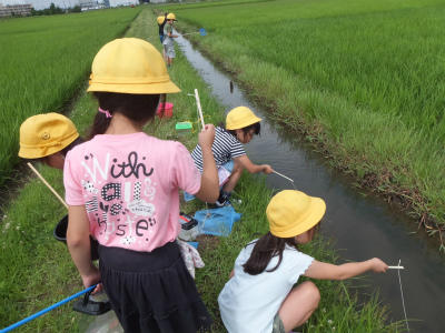 6月14日(木)1・2校時、2年生が生活科「生きものと友だち」の単元で校外学習に出かけました。学校の近くで生きもの探しをし、生きもののすみかや性質を知るための学習です。今日は大増新田にお住いの方の御協力を得て、ざりがにつりに挑戦しました。えさを工夫したり、釣り方を工夫したりしました。あちこちで歓声があがっていました。御協力をいただきまして、ありがとうございました。