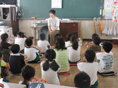 6月28日(木)2校時、春日部おはなしの会にみなさんに御来校いただきまして、「おはなし会」が開かれました。今日は、2年生、4年生、なかよし学級です。