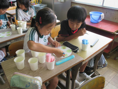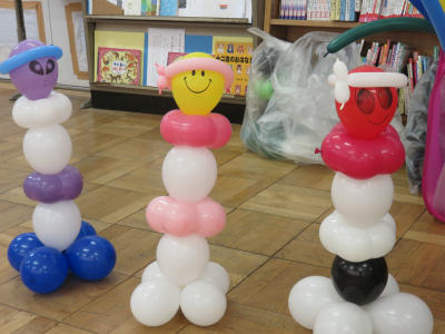 料理教室では、上手にかたどられたクッキーができあがりました。バルーンアートでは動物やミツバチができあがりました。卓球バレーは、意外と難しく、おもしろ彩エンスでは、ストローや紙コップを使って音を楽しみました。とっても楽しかったね!