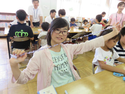 今日は、七夕の短冊飾りです。お兄さん、お姉さんに教えていただきながら、たくさんの七夕飾りを作ることができました。本校の卒業生でもある大増中のみなさんの成長を目の当たりにし、感動を覚えるひとときでもありました。立野小のなかよし学級のみんなが、とても上手にはさみを使いこなすことも知りました。七夕飾りに願いを込めて、歩みを進めていきましょう。大増中の先生、生徒のみなさん、ありがとうございました。