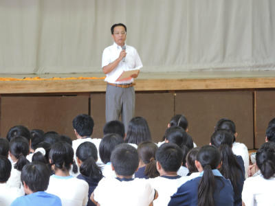 生徒指導主任からは、「命を大切にすること」。火、水、車、不審者への注意喚起の話がありました。