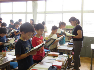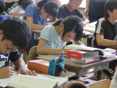 7月10日(火)今日は、休み時間ごとに校長室が大盛況です。どの子もみんな根気強く暗唱に取り組んでいます。徒然草や枕草子は当たり前のように校内で口ずさんでいます。廊下での待ち時間にうるさくなって指導を受けている様子も見られます。静かにすべきところでは静かにする。礼儀正しくあいさつをする。立野小の先生方は、いろいろな場面で子どもたちを見ています。この「校長検定」を通して、いろんなことを経験して下さいね。