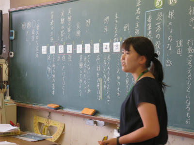 東部教育事務所学力向上推進担当指導主事 岩見 奈津枝 様に御指導をいただきました。立野小は音読にこだわり、ノート指導を徹底し、授業を進めます。鉛筆の持ち方、授業規律についても日々指導を重ねます。今後も子どもたちにつけたい力を明確にし、国語のおもしろさを体得する授業を目指します。御指導ありがとうございました。