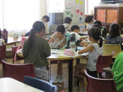 7月26日(木)9:00~学習室において「ステップアップ教室」が開催されています。たくさんの子どもたちが来ています。課題に熱心に取り組んでいます。頑張ってます!!