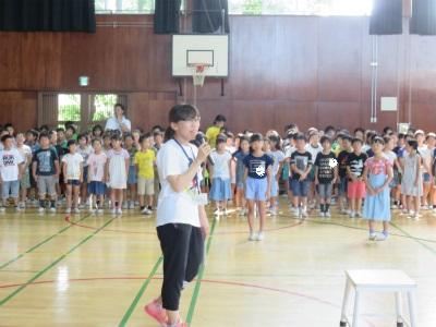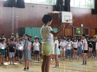 7月20日(金)1学期終業式です。今日も気温が高く、「おは走」を中止しました。体育館内も相当な暑さを感じたため、教室で放送による終業式としました。