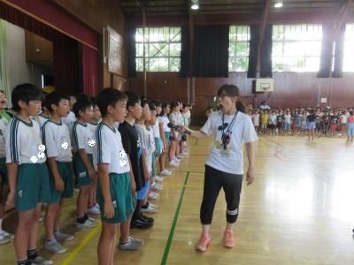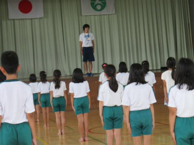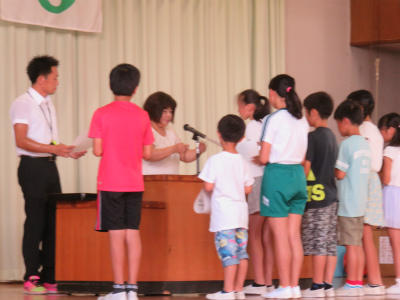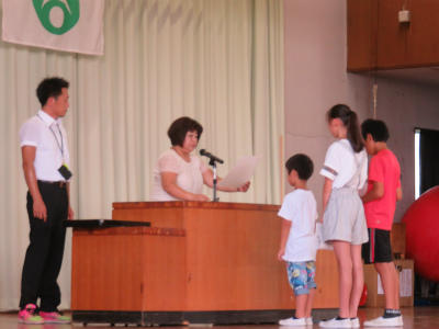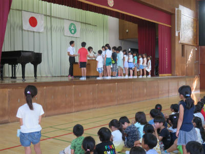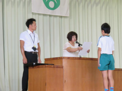 7月18日(水)朝、体育館において「表彰朝会」がおこなわれました。今朝は、朝から大変気温が高く、「おは走」は中止としました。