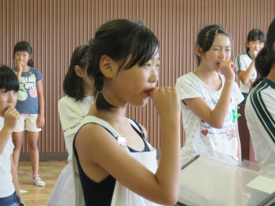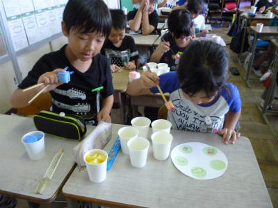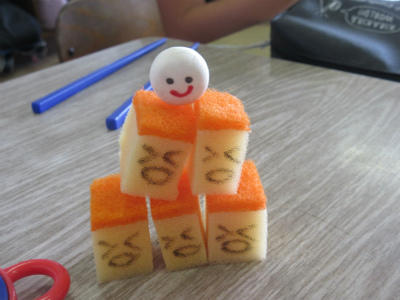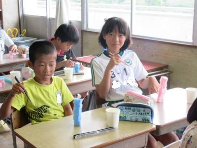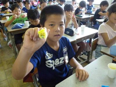 7月11日(水)2校時、3年3組において栄養教諭による「おはし名人を目指そう」の授業が行われました。スポンジに書かれた顔の表情をみながら、しっかり力が入っているかも確かめます。本校の教材は、すべて手作り。みんなで楽しくおはしの持ち方を練習しました。