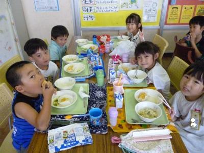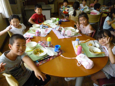 7月11日(水)1年2組は、にこにこルーム(ランチルーム)で給食を食べました。いつもとは違った雰囲気の中、楽しく給食を食べることができました。1年生も、活動力が多くなってお腹もすくようになりました。モリモリ食べて大きくなりましょうね!