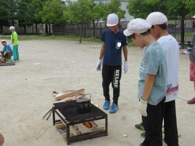 7月12日(木)10:00~校庭において、5年生の「飯盒炊爨練習」が行われました。今日は、加須げんきプラザからの指導の先生に御来校いただきました。5年生は、7月24日(火)から2泊3日で志賀高原に出かけます。当日も上手にカレーライスができるといいですね。