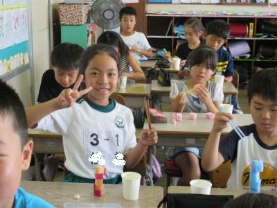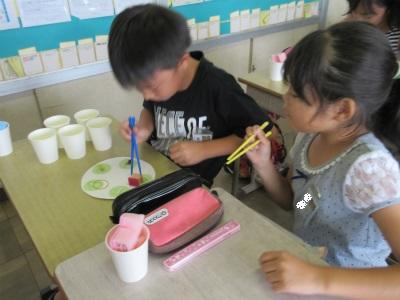 7月12日(木)2校時、3年1組において栄養教諭による「おはし名人を目指そう」の授業が行われました。手作り教材での指導に、子どもたちも意欲的に学習に取り組みました。おはしの持ち方、上手になったかな?