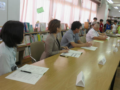 7月13日(金)13:30~図書室において「第1回学校保健委員会」が開催されました。学校医五百木先生、岩松先生、菱川先生、学校歯科医由木先生、高野先生、学校薬剤師大野先生に御指導いただきました。また、保護者のみなさまにも多数ご来校いただきました。