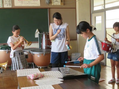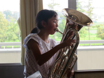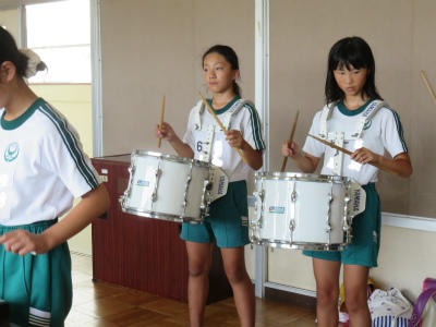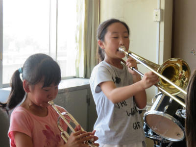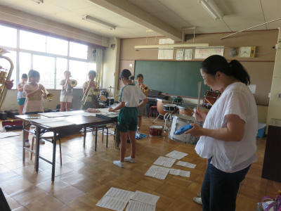 7月18日(水)放課後、金管バンドクラブの練習がありました。「世界にひとつだけの花」が聞こえてきたので、校長室を飛び出ました。気温の高い日でしたが、熱心に演奏をしていました。気迫がありますね。練習は終了していましたが、特別にもう1回聞かせていただきました。運動会も近づいてきています。当日の演奏を楽しみにしています。とてもいい音色でした。