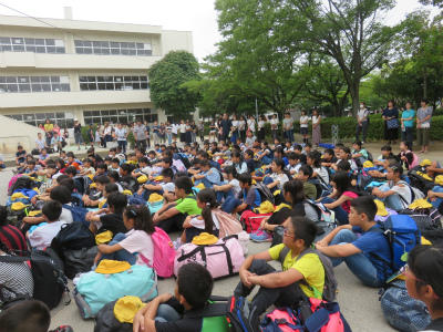 たくさんの保護者のみなさま、早朝よりお見送りありがとうございました。暑さの厳しい今年の夏ですが、昨日メール配信させていただいたとおり、急遽、飲料水の追加、熱中症予防タブレットの準備をし、休憩時に配布をしながら臨みます。また、山登り、ハイキング等におきましては、現地登山ガイドとの連携を十分に果たし、慎重に実施いたします。