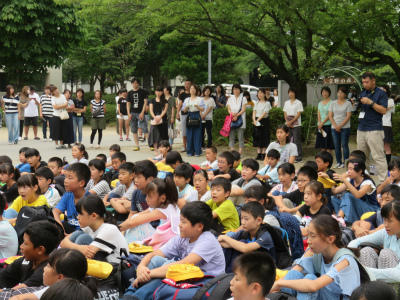 7月26日(木)2泊3日の林間学校から5年生が帰ってきました。予定より30分ほど到着が遅れましたが、129名無事に帰ってきました。保護者の皆様、たくさんのお出迎えありがとうございました。お待たせして申し訳ありませんでした。