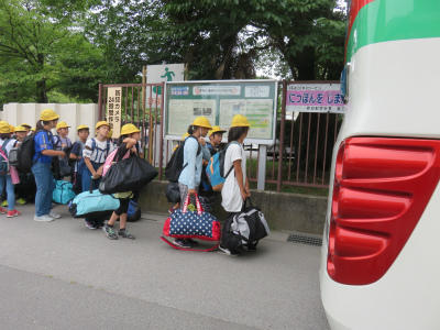 7月26日(木)5年生林間学校3日目です。現地引率教員からの報告によると、5年生は伊香保グリーン牧場での飯盒炊さんを終え、バスに乗車しました。全員元気です。カレーもおいしくできたようです。練習の成果が発揮できましたね。14:45に出発しましたので、15分遅れです。到着時刻に大きな影響はない模様です。いよいよ帰ってきます。