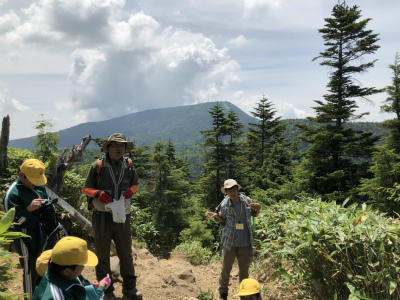 7月25日(水)5年生林間学校 登山に挑戦中です。1名、体調不良により来た道を引き返しました。体調も回復し、教員も付き添っていますので、心配はないようです。